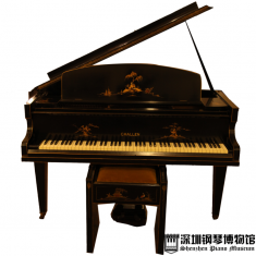 查伦(CHALLEN),琴身采用黑色丝光斜纹的中国漆器工艺作为装饰,绘有中国神韵的精美漆画,四方形纤细琴腿,附有琴凳。查伦平台钢琴为英国皇家音乐学院(ABRSM)各级考试的指定用琴。现收藏于深圳钢琴博物馆。